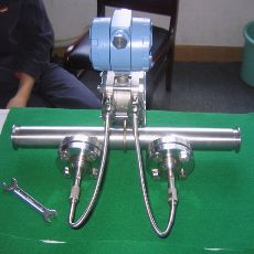 其原理是流體通過楔形流量計時,由于楔塊的節流作用,在其上、下游側產生了一個與流量值成平方關系的差壓,將此差壓從楔塊兩側取壓口引出,送至差壓變送器轉變為電信號輸出,再經經專用智能流量積算儀運算后,即可獲知流量值。