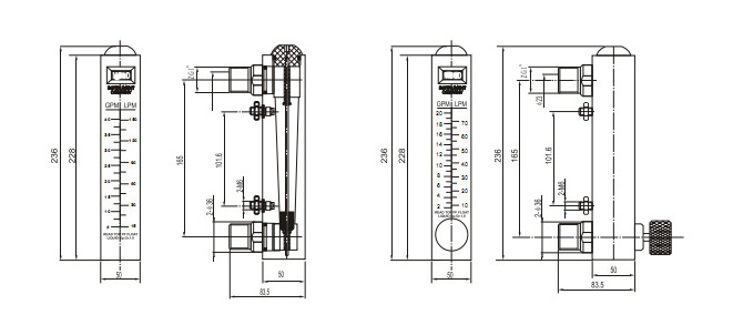 面板式流量計的主要測量元件為一根小端向下,大端向上垂直安裝的錐形管及其在內可以上下移動的浮子。當流體自下而上流經錐形管時,在浮子上下之間產生壓差,浮子在此差壓作用下上升。當使浮子上升的力與浮子所受的重力,浮力及粘性力三的合力相等時,浮子處于平衡位置。因此,流經流量計的流體流量與浮子上升高度,即與流量計的流通面積之間存在著一定的比例關系,浮子的位置高度可作為流量量度。面板式流量計主要組成浮球、導桿、本體、外接等制成,有較好的耐腐性能,產品還具有結構合理、體積小、重量輕、錐管不易破碎等特點,面板式有機玻璃轉子流量計可廣泛應用于凈水設備、化工、環保、石油、醫藥、食品等工業部門。還可用于實驗室等科學研究。