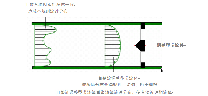 RC調整型流量計的自整流調整型節流體結構設計,可以對上游流體的流速分布曲線重新整流,使其更接近理想流體,使得在現場極端苛刻安裝條件下也能均勻流體流速分布,這保證了RC調整型流量計依然有很高的測量精度: