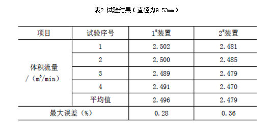 為了驗證ISA1932噴嘴測量裝置的重復性,選取直徑為9.53mm的噴嘴進行試驗。保證試驗工況基本相同的情況下,試驗結果見表2。