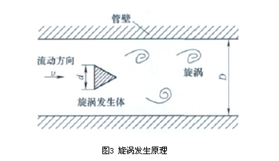渦街流量計的測量主體是非流線型旋渦發生體。當流體流過旋渦發生體時,在發生體兩側會交替地產生旋渦,并在它的下游形成規則的兩列不對稱的旋渦列,如圖3所示。