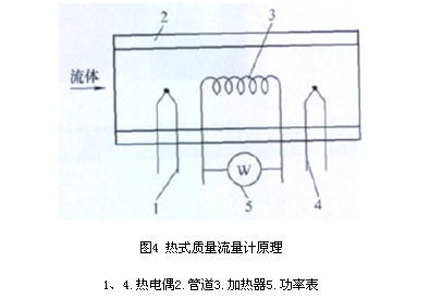 熱式質量流量計的原理是通過測量氣體流經流量計內加熱元件時的冷卻效應來計量氣體流量的。氣體通過的測量段內有兩個熱阻元件,其中一個作為溫度檢測,另一個作為加熱器。溫度傳感元件用于檢測氣體溫度,加熱器則通過改變電流來保持其溫度與被測氣體的溫度之間有一個恒定的溫度差。當氣體流速增加,冷卻效應越大,使須保持熱電阻間恒溫的電流也越大。此熱傳遞正比于氣體質量流量,即供給電流與氣體質量流量有一對應的函數關系來反映氣體的流量,如圖4所示。