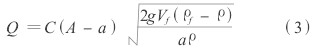 從式(1)和式(2)之間的關系,我們可以得到流量Q的計算公式為