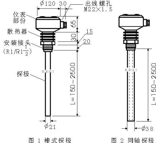 1. 本界面變送器探極長度可根據現場需要選擇,應稍短于料倉高度;小于2.5米時應選用棒式