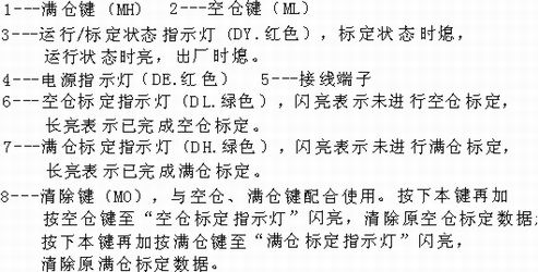 閃亮,清除原空倉標定數據;按下“清除+滿倉”鍵至“滿倉標定指示燈”閃亮,