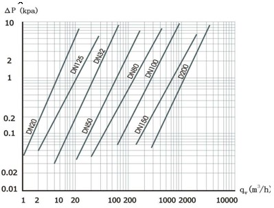ΔP ¬——介質為干空氣時流量計的壓力損失(KPa),其特性曲線見下圖