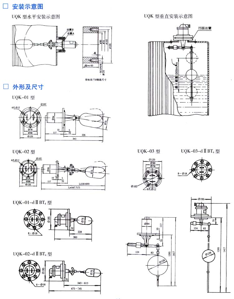 UQK-01、UQK-02、UQK-03型浮球液位控制器適用于對各種容器內液體的液體控制,當液位到達上、下切換值時,控制器觸點發出通斷開關式信號。產品系列分防爆或非防爆兩大類,防爆型能用于易燃和易 爆介質為1.2級及A、B、C組承壓容器的液位控制。控制器不適用于對黃銅、不銹鋼等材料有較強腐蝕作用以及含有導磁雜質的介質。